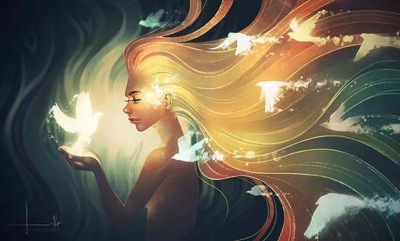 Your art is so extremely beautiful!!! The colors are amazing and love the expression on her face, especially with the birds emphasizing it!!! love it