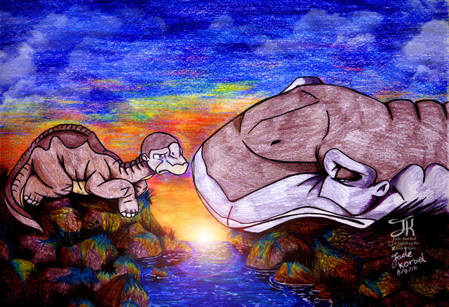 Thank you! I really enjoyed trying to convey the scene through their body language. And I'm glad you like the sky! I felt like something patchy suited the scene well, with vivid colors behind the cloud cover. Kind of like the tumultuous thoughts and motives working within the two guarded predators