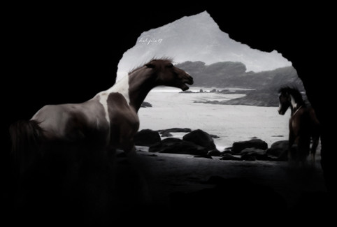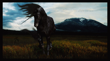 I think this is my favorite in your gallery. The composoition is great and the lovely rich monotone adds to the cold, lighted effect of this work. The horse is crossing the composition at a great point and creates so much action. I love how the background is a very easy to see landscape and it travels far into space and feels like a flawless image. I wonder if the action of the horse would be helped a little if the mountain behind his head was lightened a little bit, it seems to get lost in that area.