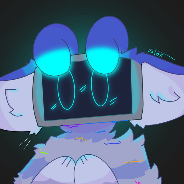 #digitalart #cat #originalcharacter #neon #fluffy #anthro #blue #eye #furry #glitch #pink #purple #screen #tvhead #screenface