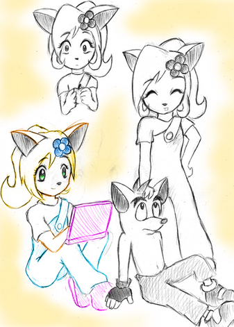 I love their outfits and the way you drew their hair. I also like that you put the characters in everyday situations, it makes for fun pictures