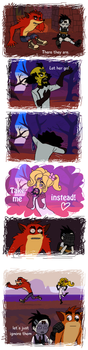 -- crash attacks with a swift spin and evil coco lets her sister go --