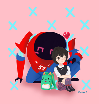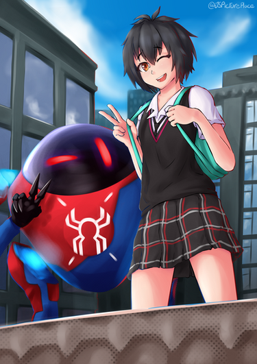 Aha my bad for not uploading anything much during this month trying to work with a new tablet, and deal with skoolAnyways have a drawing of the famous spooder-loli Peni Parker from the upcoming Spooderverse movie :3