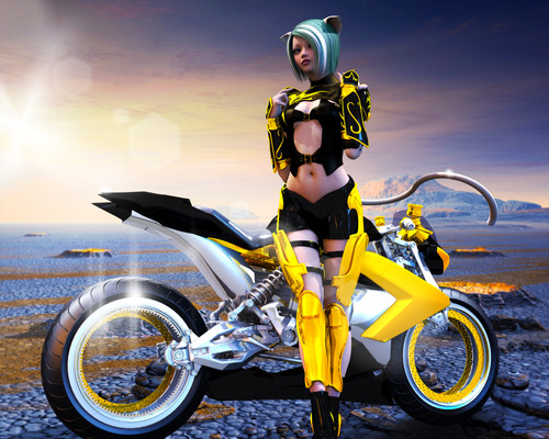My first attempt on using color theory! Figure is V4. Ears and tail are from my "Animal Anime Pack". Bike is a freebie from 3D World Magazine. Hope you like and thanks for coming by!