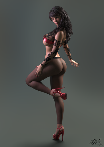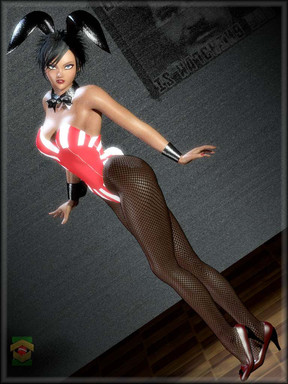 ~Playmate Walk~Inspired by Leroy Neiman's vintage "Femlin" cartoon mascot character, here as a bunny girl. Figure is Dawn, custom body shape by me. Rendered in Poser with Superfly.