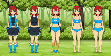 *nosebleed* no wait i got punched in the face. looks really good, the only comment i'l make about it though is the colour of the green shirt. its too light in my opinion, and if you do change it, change the coulor of the shorts darker too, otherwise it might look weird.