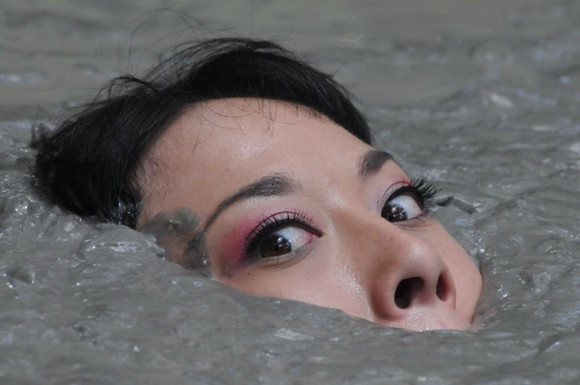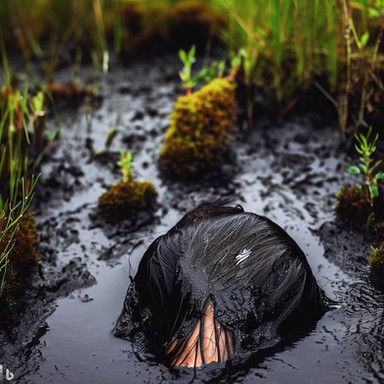 Destined to be part of the fossil record. I like it when they have a "last" look at the camera and the mud look bent around their heads, like it is indeed sucking them in.