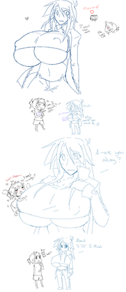 And her t-shirt got in an accident with the dryer, giving it super stretching abilities. :Z
