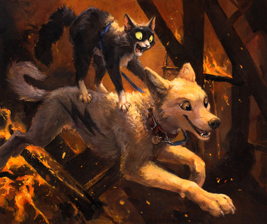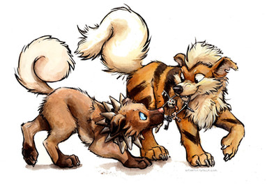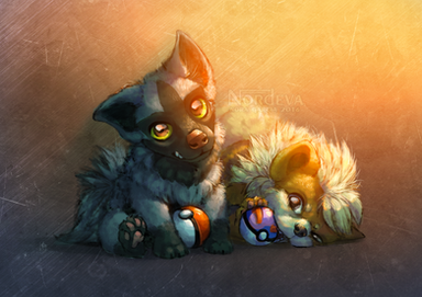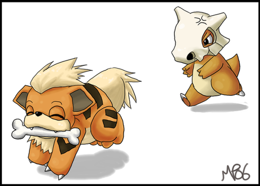 Awww, a Marowak playing with a Rockruff, so cute :3