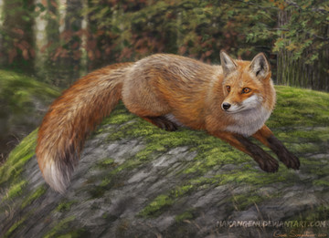 I just love this so much! The color and light truly feel like Autumn, and the fox's fur is so well done, as is the pose and the eyes! the leaves are incredible, I don't know how you can be so patient with them! ( i just tried to draw a leaf-covered forest floor today, didn't happen, heheh) Very, VERY well done here!