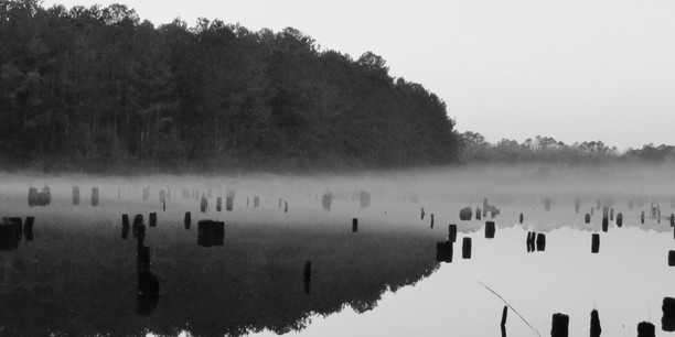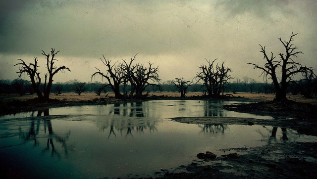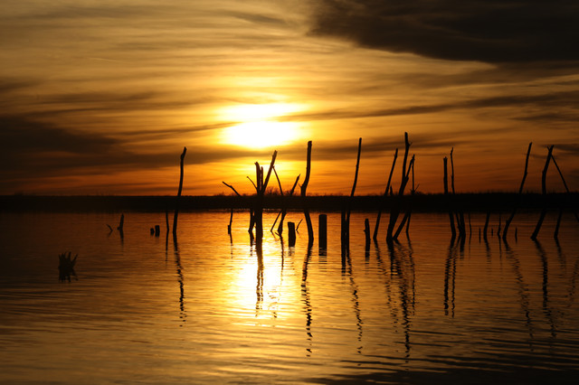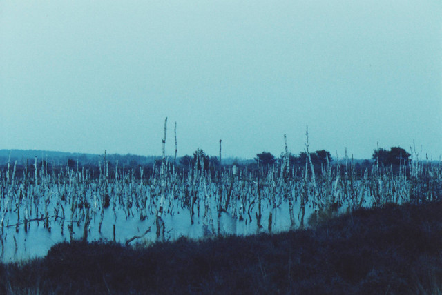 Actually the image is of an ecological battlefield of man vs nature. Man won. For hundreds of years some advocated for a shortcut canal across the middle of Florida. By the time construction was finally approved, the canal wasn’t needed. Not a problem, people with influence who were going to make money from the project got their way. Eventually the US government admitted the project was a mistake and stopped construction. But by then the damage was done, including the flooding of a river valley. These trees were once part of an important forest ecosystem.