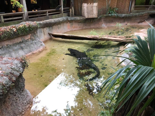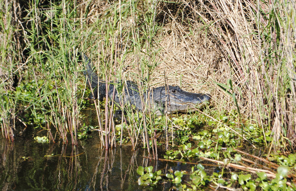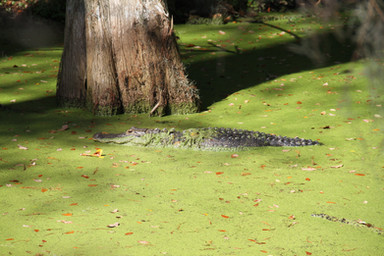 This is the end of the line for civilization. Keep going and you’re gator bait, or worse. The location is Wakulla Springs State Park in north Florida. It’s the location where the movie Creature of the Black Lagoon was filmed. Today the creatures are giant gators who aren't afraid of people. You can see them up close and personal on the jungle cruise. On one cruise, the guide spotted a gator on the bottom eating a deer. Turns out it was a human who had snuck into the park to steal Indian artifacts along the banks of the river.