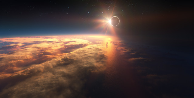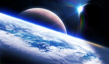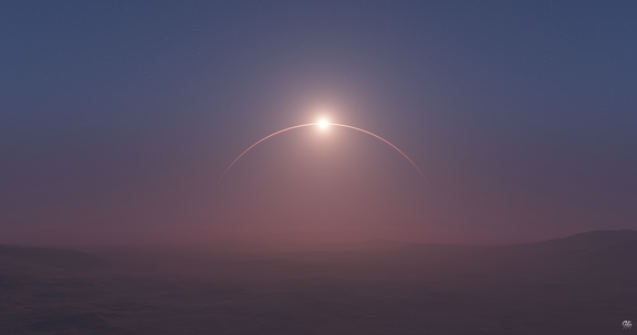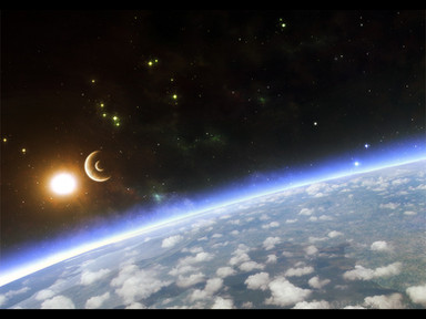 :} looks great, I can see the mountains on that planet verry nice, but the moon is a little bit odd. I canΒ΄t see even one crater on it. shouldenΒ΄t it look more like [link] or [link] (I hope the links are working ^^) more like a newmoon, or are we so blinded by the light of the sun that we canΒ΄t see any details of it? I like the stars..I can imagine some star constellations and I like the moonshadow at the planet.