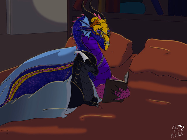 Here are KekoArtistry's WoF OCs Mahogany and Azul reading a book together!Find me on Art Fight here! --> artfight.net/~KenopsiaDraws