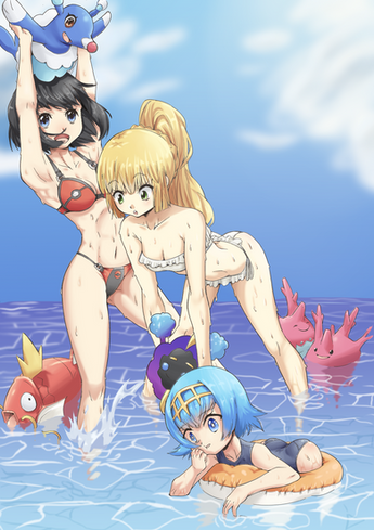 #bikini #black #black2 #dive #luvdisc #marill #mei #pink #pokemon #twintails #white #wooper #manaphy #inkay #kenron #buceando #toqueen