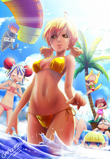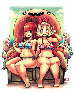 #beach #bikini #girls #go #oc #octopus #ribbon #tentacles #yavi #tomatita #kenron #thighhighs