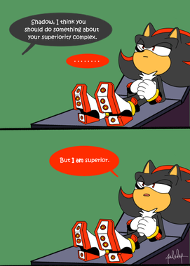 In this scenario, Shadow and Robby are fighting over a chaos emerald (with Robby wanting to sell it and Shadow refusing Robby to do anything with it)