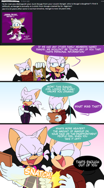 Genderbend!Hey you know that Rouge collects treasure and jewels because they look gorgeous and beautiful on her? well I considered that reason may be too girly for Robby (Rouges GB counterpart) So I came up with Robby collecting all kinds of treasures for the purpose of selling them for money. In fact his dream is to live in a mansion in the middle of nowhere surrounded by money (Greedy guy huh -_-) Probably the reason why Krystal (Knuckles GB counterpart) and Shadow have a bad opinion of getting his hands on the chaos emeralds and master emerald.
