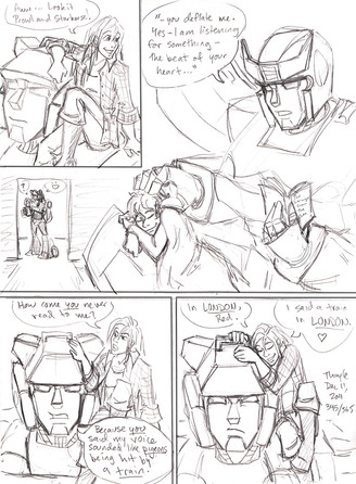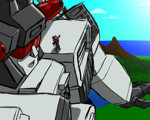 Might as well post some other things from the RP tumblr. Thayle met a Bluestreak (another RPer) who was the cutest Bluestreak and he carried her around like this until he was convinced she wasn't an energy vampire and let her sit on his shoulder.Drawing Transformers carrying humans around like kitties is a rare and beautiful privilege