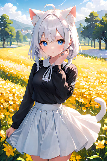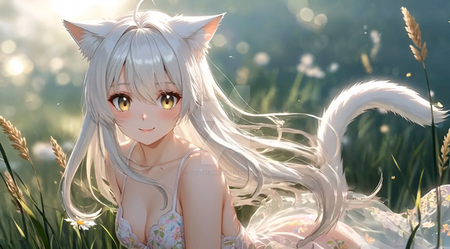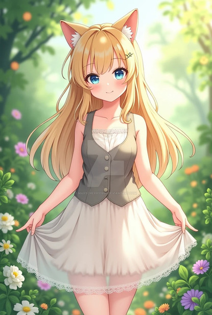 #anime #animegirl #catgirl #digitalart #originalcharacter #digitalpainting #characterdesign #dress #ai #forest #girl #lake #ribbon #shorthair #summer #summerdress #aiart #stablediffusionart