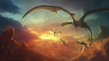 When I was younger, and got my first computer, my dad downloaded several random pictures of dragons just for me, cuz he knew how much I liked them. I grew up looking through that folder, grew up admiring and adoring several dragons--dragons that would inspire me to come up with my own dragon characters inspired by those art pieces.Β This was one such art piece...this was one of my personal favorites. Since I didn't know where the art came from, I named each piece the way I thought suited them: I named this one "The Love of Giants".