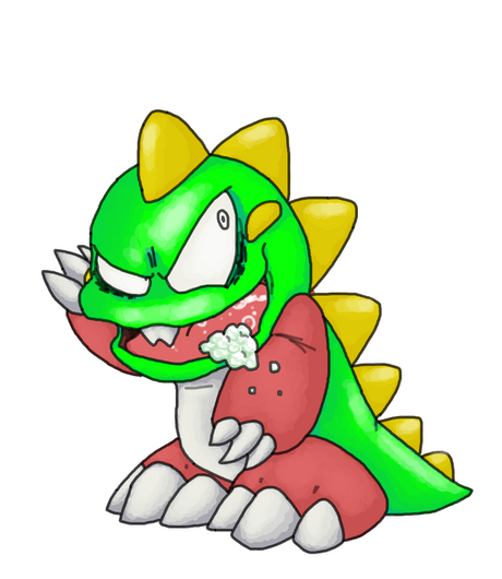Well, you already know this is cute. It's good to see you coloured the eyes brown, it draws the viewer to them, and you didn't do too many bubbles to counteract the streamlined composition.
