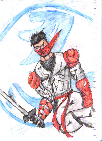 Free drawing and a contest entry for [link]It is the evil twin brother of his character Gemini. As Gemini wears all white his brother wears all black but in this pic it kindas just looks like gray T_T Also he has a red dragon instead of a blue one. I have red lead for my mech. pencil so thats why its colored lol