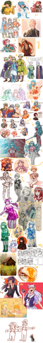 Oooooh all these characters! I really like how you drew all of them! They're all so nice and colourful too~ It's impressive that you drew so many! I would never have the patience for that, haha.