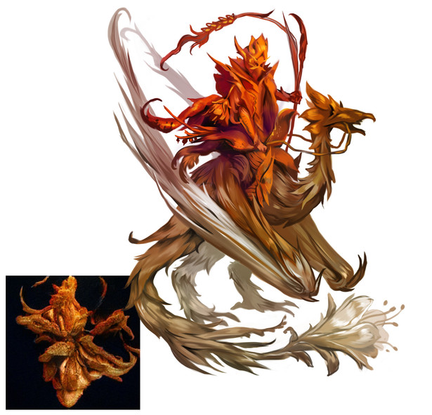 The fire and feathers remind me of a phoenix. Perfect symbolism for a queen!