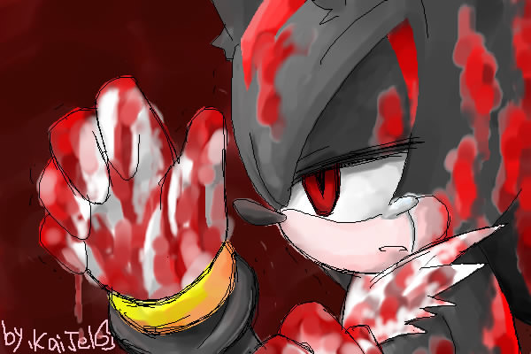 But funny enough I wanted it to look like this xD Dunno how to explain it... Like not the natural, visible blood, but more like a feeling of it, the graphical effect, "the ink" (yeah) splattered. Tho, maybe in that case shadows need to be more sharp X) Ehhh... I'll be working on it ^^"