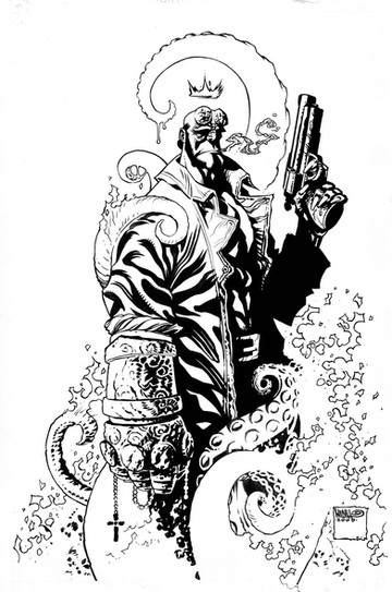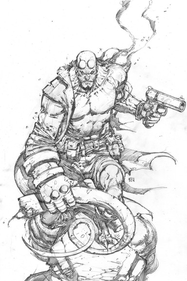 this is a hellboy drawing i did on an 18x24 bristol board. inked by victor llamas. best inks i've seen over my work. i'm still drooling over it, but i have to sell it. so it's for sale and if anyone is serious about buying it contact me at keucha@gmail.com. also, if anyone wants to color it, feel free to, i'd love to see your take on it.Related content
