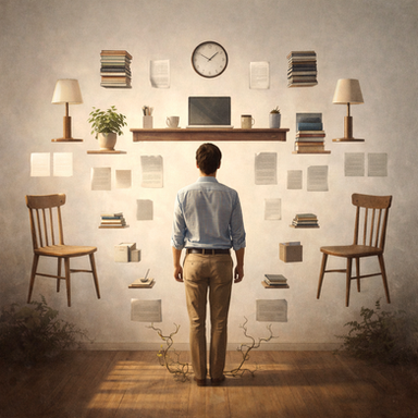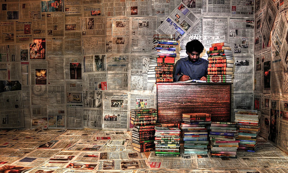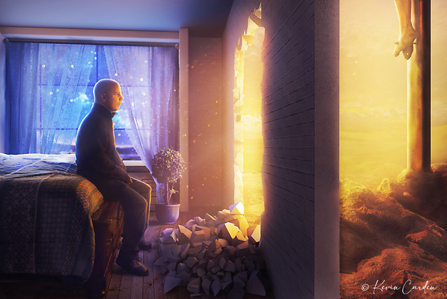 Whatever you do, work heartily, as for the Lord and not for men. (Colossians 3:23)I prepare a Sunday School lesson each week at my church, and many times it requires a whole lot of studying and research. So, I wanted to show an exaggerated version of what some of my work looks like. I took a picture of myself at my desk with papers, books, and an open Bible. Then I modeled a simple office scene in Cinema4D with stacks of books everywhere. Finally I blended the two images together in Photoshop. Start to finish was probably around 4 hours of work.