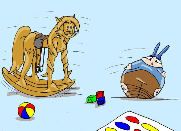 Oh she's soo cute! Being a pink little rocking horse is definetly an improvement from her human form! well done!