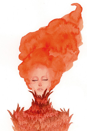Wie schaffst Du es, dass die nasse Farbe nicht in den Rest des Bildes hineinläuft? Vor allem dort, wo die dünnen "Dekostreifen" aus dem Hals der Frau kommen.