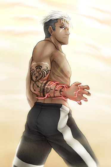 adasda;f Lancer <3 I'm kinda torn. I love his pants, they have gorgeous design. But I also love the fact that he's shirtless Â