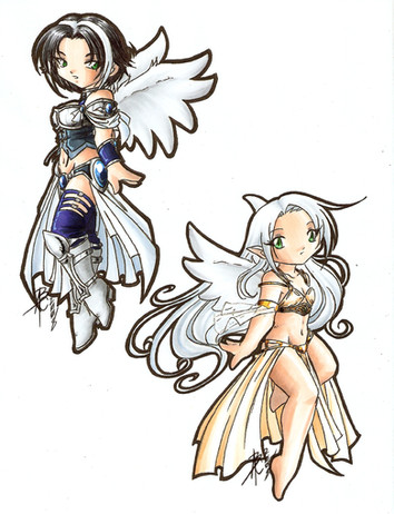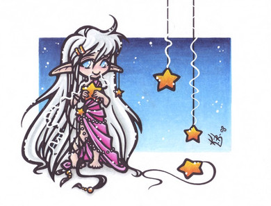 One image from a chibi Calendar I am making to sell on Deviant Art. The Calendar will feature all 8 of my element goddess' (From my manga) for each month - plus four new goddess who are made for the calendar only. Once complete, the Calendar will be on sale at DA as well as individual prints of each girl which will be up once they've been submitted.This is Hikari, goddess of Light. Representing the month of: November.