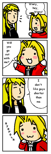 Sometimes I tease her about being shortER than Ed, but then I mentally slap myself because she's clueless about FMA.