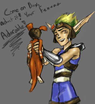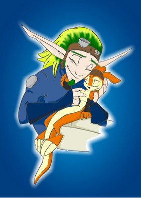 Guh...this only makes up SLIGHTLY for the uber adorable pic she did based on my Jak and Daxter doujin (still gushing over it). Thanks so much for letting me colour this, luff! :3