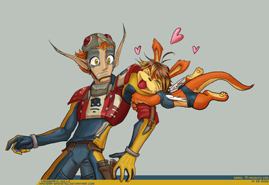 At one point I was inking Jak's hand and wondered if I had mistaken something for an extra finger (which ended up being Dax's hand) but i figured it out pretty quickly. Was fun doing something with your style. :3 Thanks again!