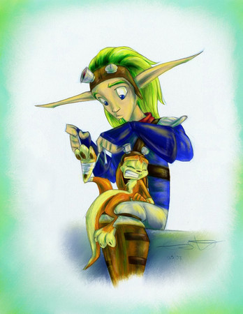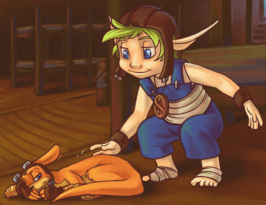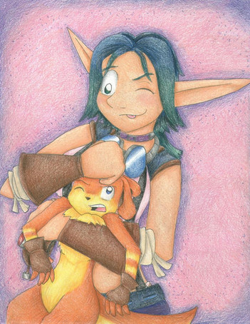 And your inks are just so smooth and definitive. I love how you ink. And the fact that you can tell its very much Enolian's picture, but your colours <3 I really love the colours you choose for Daxter. He looks so tiny there <3 And the colour in Jak's hair is just beautiful.
