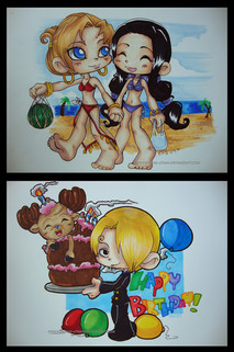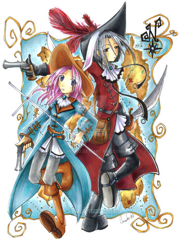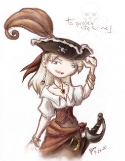 A little and much over-due gift for , darling friend and fellow pirate lover! :3Something for fun - our pirate girls Cheraldine and Joelle, on the hunt for buried treasure.