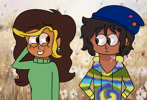 So, this is Dana, the precious bean to the right, and my friend, Savannah's Sister Location neighbor, Skyler! I drew them because heck, I was bored. And heyyyy, I did backgrounds for once! Y a y!Dana's ds. me