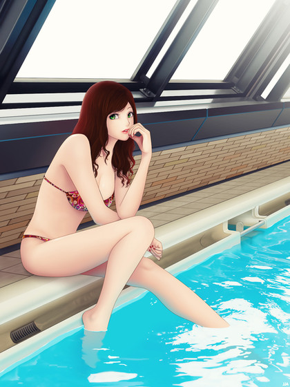Your female character really stands out in this artwork, if I was approached by a beautiful woman such as her & she asked me to hop in, I'll never say no.