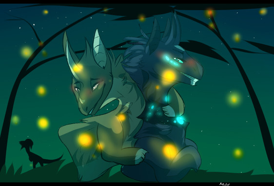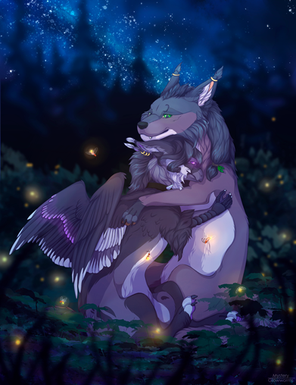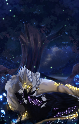 #feathers #forest #horns #night #oc #thelastguardian #trico #digitalpainting #fantasycreature #fireflies #oc_artwork #tricothelastguardian
