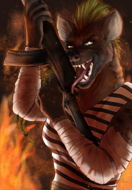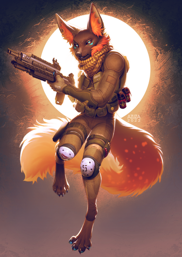 #anthro #anthroart #chompers #commission #digital #female #fullbody #furry #furryart #furryfandom #gun #hyena #illustration #jade #knife #pistol #shooting #soldier #weapon #yeen #art
