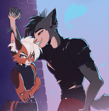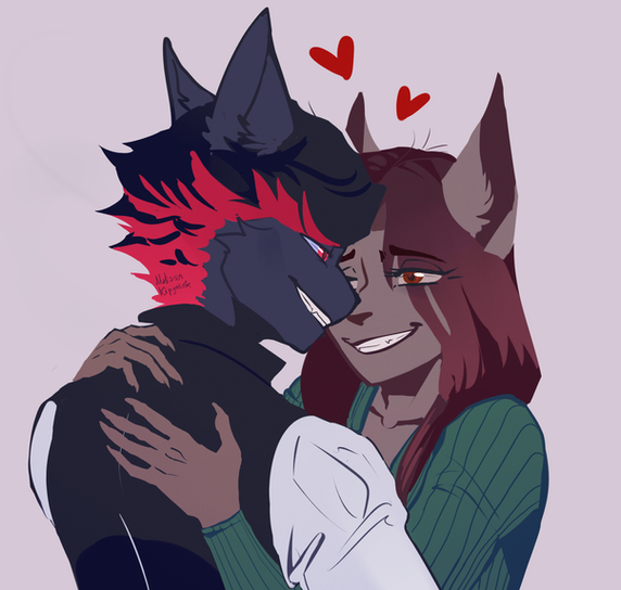 #anthro #anthroart #chompers #commission #couple #digital #doberman #furry #furryart #furryfandom #hearts #illustration #love #lynx #teeth #art