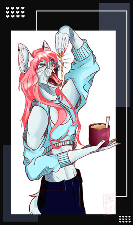 #anthro #anthroart #artwork #canine #deviantart #digital #digitalart #furry #furryanthro #furryart #furryfandom #fursona #hybrid #hyena #light #noodles #oc #originalcharacter #ramen #wolf #art #fire