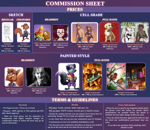 Used a template by Ultraviolet @ FA. I feel it's a bit pointless posting it here because business is slim to none here but I know people are often too lazy to read an actual text description of commission prices >.>Related content