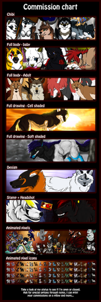 I actually just closed them a few days ago because school is starting back up soon I'll always take $3 sketch commissions though since they aren't that time-consuming. Other than that though, I'm afraid I need to clear my plate for school D: And my FA is furaffinity.net/user/saruki :3