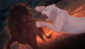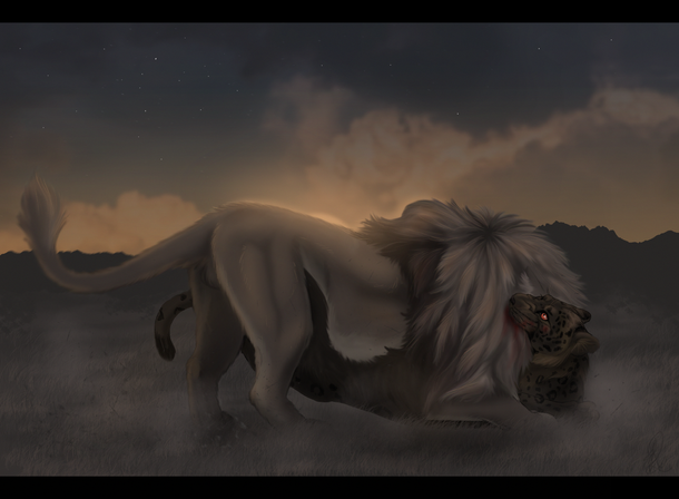 Wowza, wonderful artwork.Β I like how the dirt seems to be kicking off the ground as they fight.Β Β